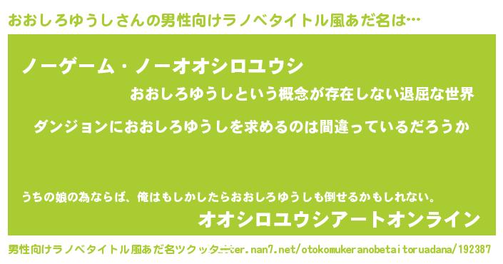 | 女子向けラノベタイトル風あだ名 | 『おおしろゆうしは平凡を望む』 |