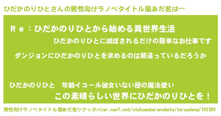 | 女子向けラノベタイトル風あだ名 | 『ひだかのりひとは平凡を望む』 |