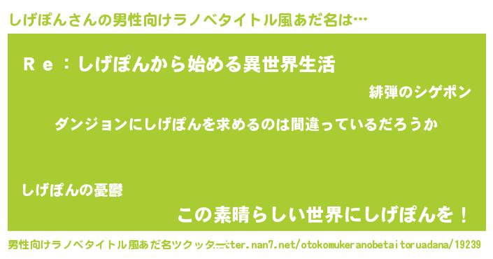 | ピコ太郎風あだ名 | 『シゲ五郎』『シコ六郎』『ピシ二郎』 |
