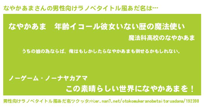 | 女子向けラノベタイトル風あだ名 | 『なやかあま伯爵の花嫁』 |