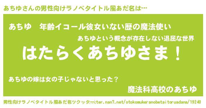 | ヘコむあだ名 | 『あちゆ(小並感)』『あちっちょ』 |