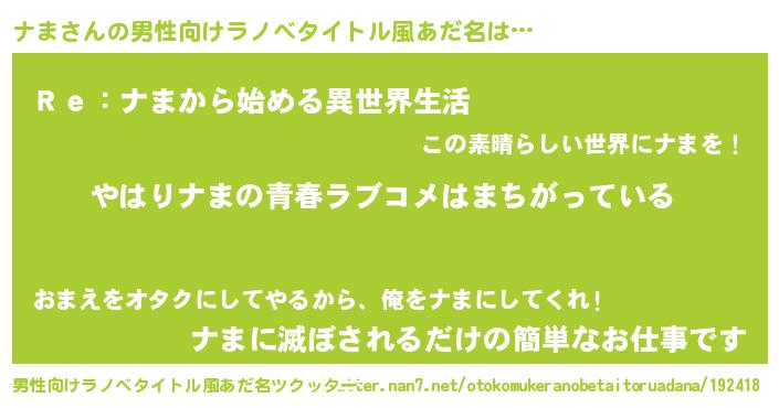 | 女子向けラノベタイトル風あだ名 | 『ナまの雑貨屋さん』 |
