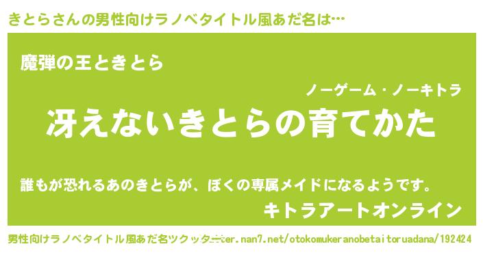 | ヘコむあだ名 | 『きとにー』『きとら(小並感)』 |
