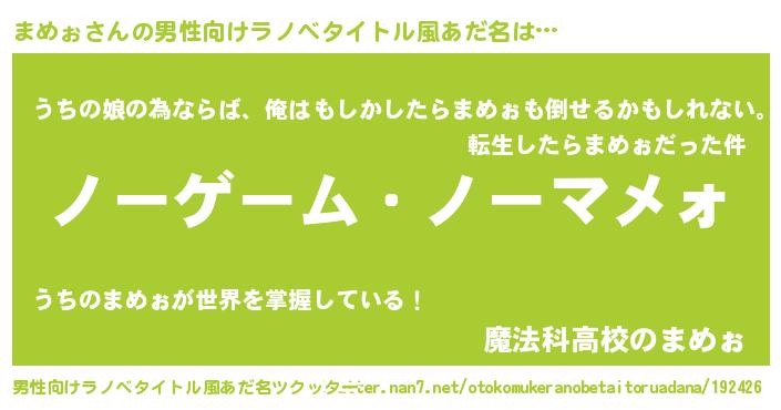 | 女子向けラノベタイトル風あだ名 | 『まめぉ恋絵巻』『まめぉの婚約者』 |
