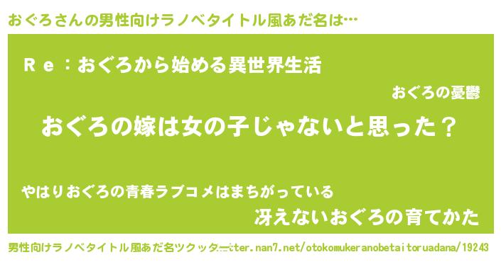 | 女子向けラノベタイトル風あだ名 | 『おぐろ様がみてる』『闇のおぐろ』 |