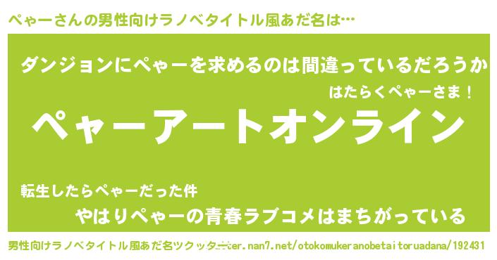 | ヒーロー風カッコイイあだ名 | 『スーパーペャー』『魔戒騎士ペャ』 |