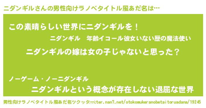 | 胡散臭い通販商品みたいなあだ名 | 『全米が絶賛したサプリメント…その名も「ニダンギル」』 |