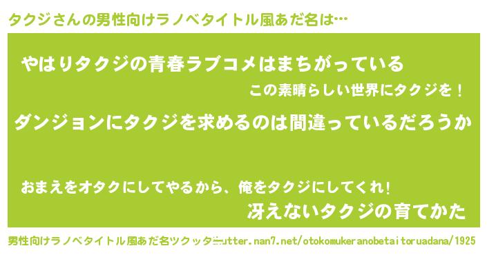 | ピコ太郎風あだ名 | 『タク次郎』『ピタ五郎』『タタ太郎』 |