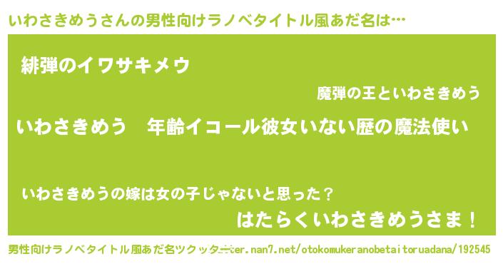 | 女子向けラノベタイトル風あだ名 | 『いわさきめうの玉の輿計画!』 |