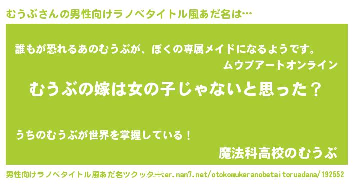 | 女子向けラノベタイトル風あだ名 | 『むうぶ様がみてる』 |