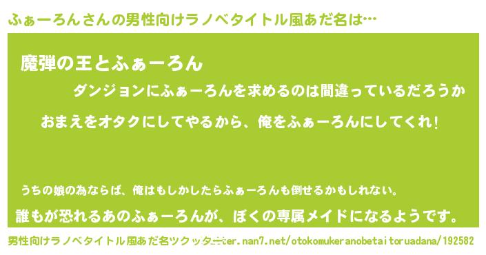 | 女子向けラノベタイトル風あだ名 | 『ふぁーろん恋絵巻』 |