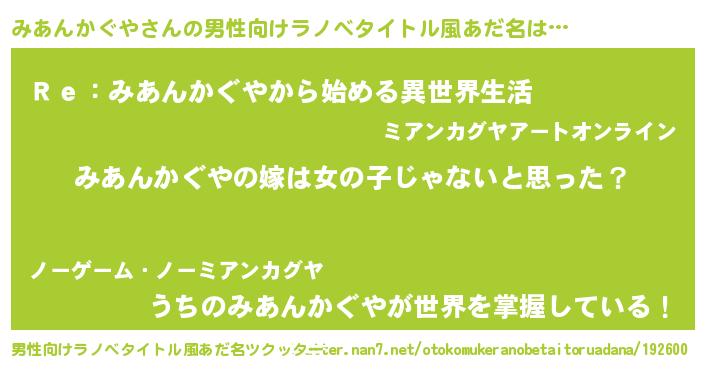 | 女子向けラノベタイトル風あだ名 | 『みあんかぐや様がみてる』 |