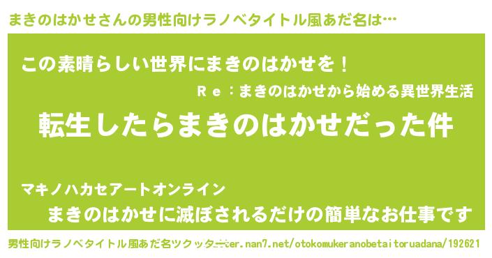 | 女子向けラノベタイトル風あだ名 | 『婚約破棄系悪役まきのはかせに転生したので、保身に走りました。』 |