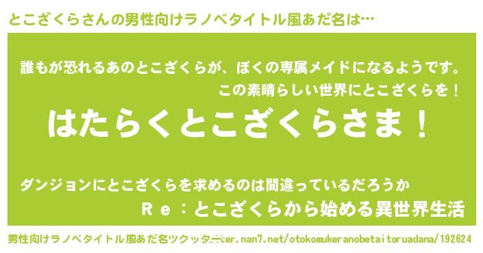 | 意味不明あだ名 | 『永久保存とこざくら』『自称とこざくら』 |