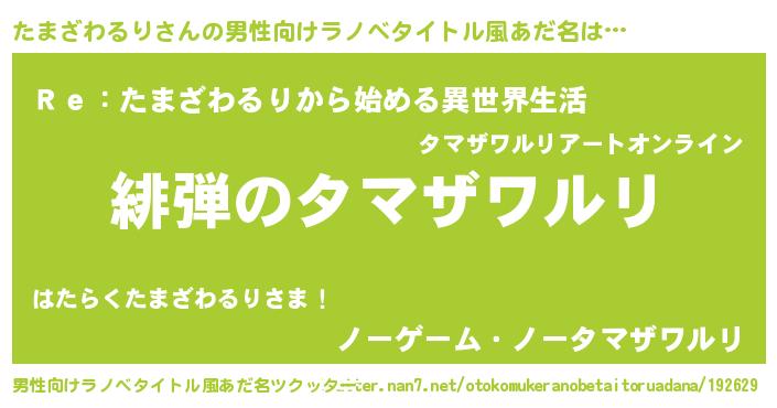 | 意味不明あだ名 | 『自称たまざわるり』 |