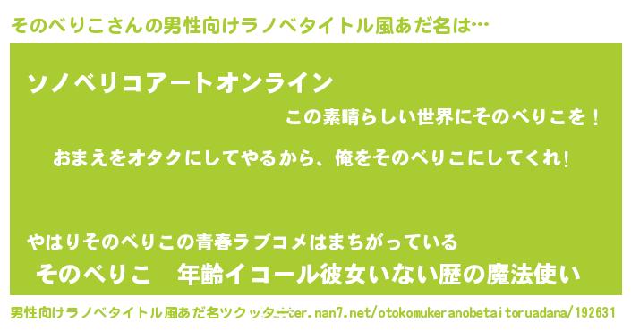 | 女子向けラノベタイトル風あだ名 | 『そのべりこ夫妻のなれそめ』 |