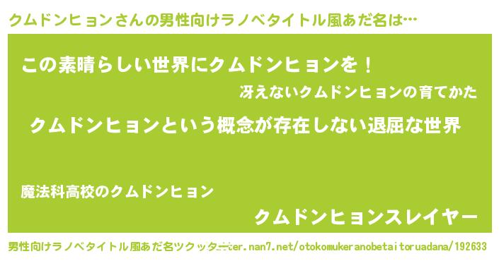 | 女子向けラノベタイトル風あだ名 | 『異世界で失敗しない100のクムドンヒョン』 |