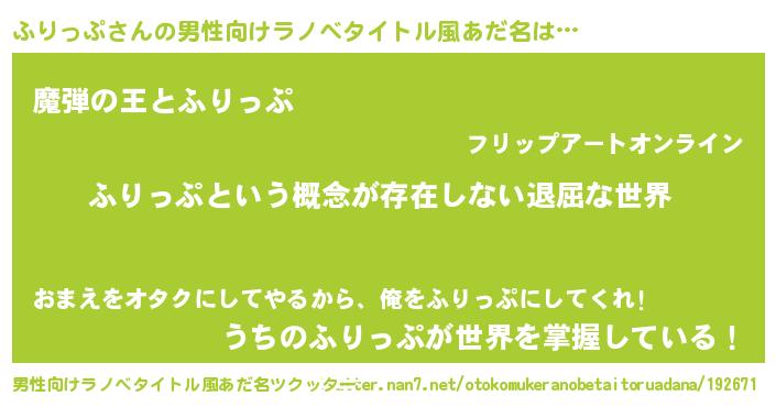 | 胡散臭い通販商品みたいなあだ名 | 『来世でも幸せになれる水素水…その名も「ふりっぷ」』 |