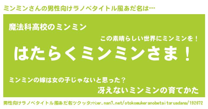 | 意味不明あだ名 | 『自称ミンミン』『ペロリンミンミン』 |