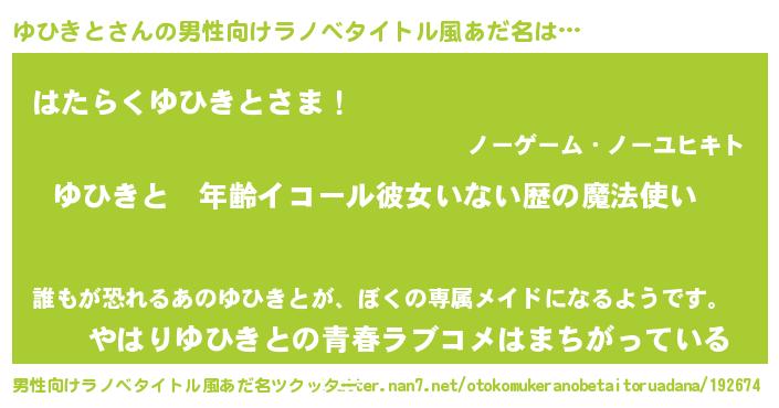 | 女子向けラノベタイトル風あだ名 | 『ゆひきとの玉の輿計画!』 |