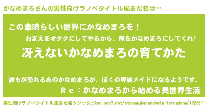 | 意味不明あだ名 | 『住所不定無職かなめまろ(13歳)』 |