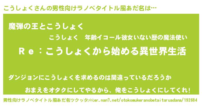 こうしょくさんの男性向けラノベタイトル風あだ名をツクッター!