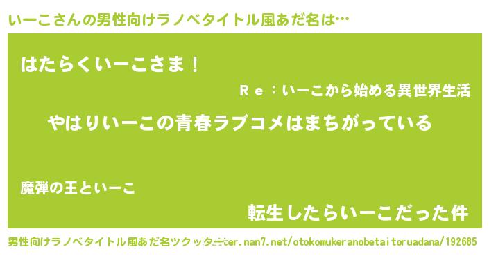 | 意味不明あだ名 | 『いーこフォーエバー』『自称いーこ』 |