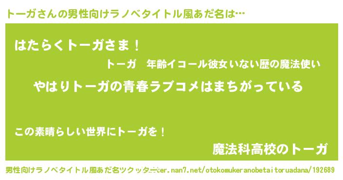 | 女子向けラノベタイトル風あだ名 | 『トーガの雑貨屋さん』 |