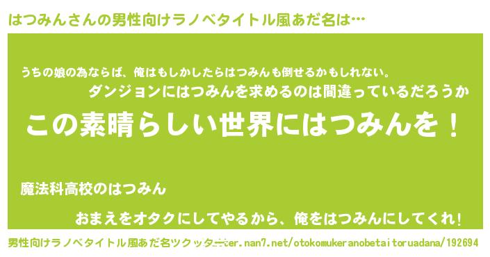 はつみんさんの男性向けラノベタイトル風あだ名をツクッター!