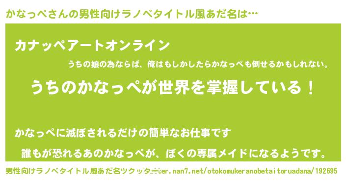| 女子向けラノベタイトル風あだ名 | 『男装かなっぺの憂鬱な任務』 |
