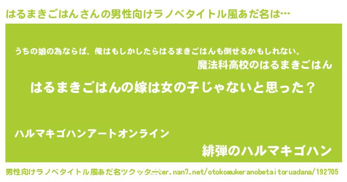 | 女子向けラノベタイトル風あだ名 | 『はるまきごはんの卵を拾いまして』 |