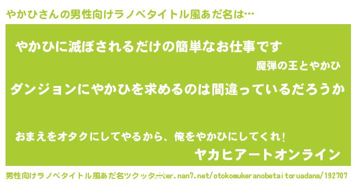 | ポケモン風あだ名 | 『ヒヤカヒ』『ヤカゴンZ』『ヤーカイ』 |