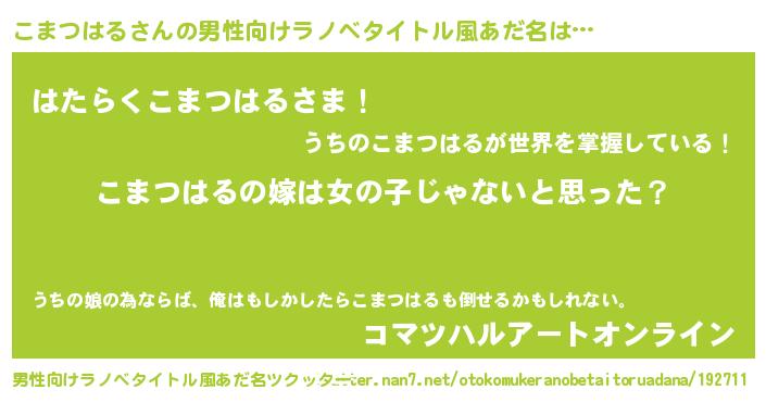 | 女子向けラノベタイトル風あだ名 | 『こまつはる様がみてる』 |