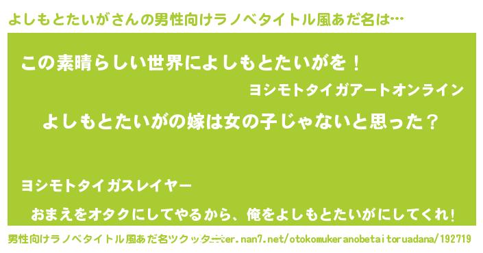 | 胡散臭い通販商品みたいなあだ名 | 『伝統あるサプリメント…その名も「よしもとたいが」』 |