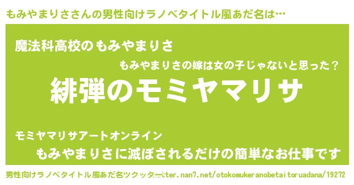 | 女子向けラノベタイトル風あだ名 | 『シンデレラもみやまりさ家の靴箱館』 |