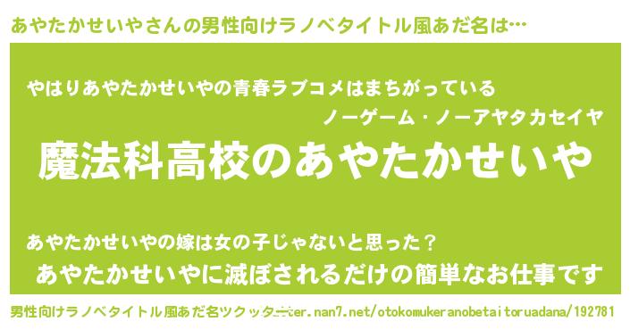 | 女子向けラノベタイトル風あだ名 | 『あやたかせいやアンティーク』 |