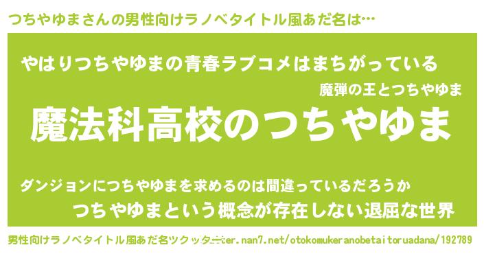 | 女子向けラノベタイトル風あだ名 | 『つちやゆまなんてお断りですっ。』 |