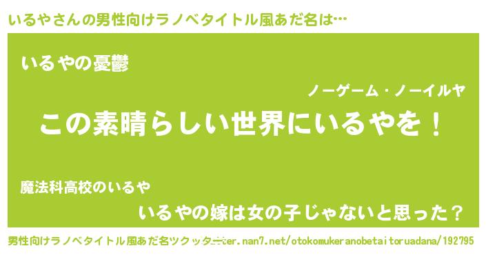 | 意味不明あだ名 | 『住所不定無職いるや(91歳)』『自称いるや』 |