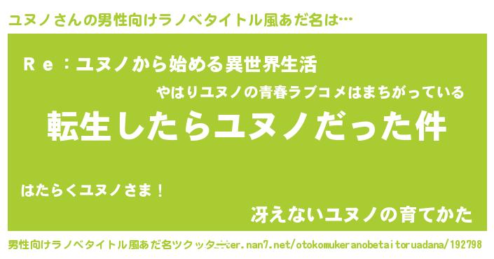 | ヘコむあだ名 | 『豆乳』『ユヌお』『ユヌにゅー』 |