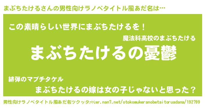 | 女子向けラノベタイトル風あだ名 | 『(仮)まぶちたけるのやんごとなき事情』 |