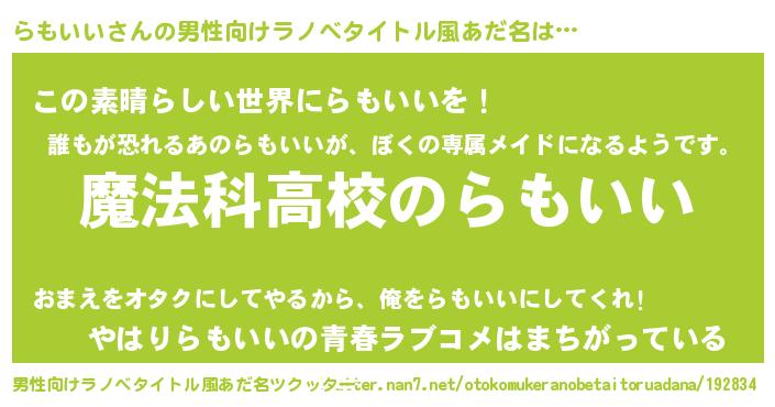 | ヘコむあだ名 | 『牛乳』『らもいい(笑)』『らもお』 |