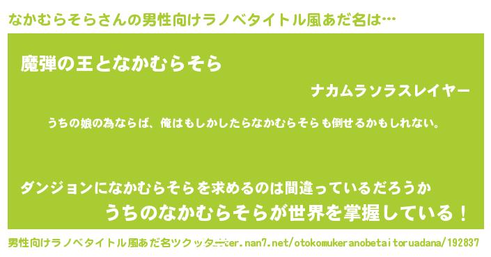 | ファンタジー風あだ名 | 『エターナルナカムラソラー』 |