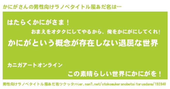 | 胡散臭い通販商品みたいなあだ名 | 『来世でも幸せになれる健康食品…その名も「かにが」』 |