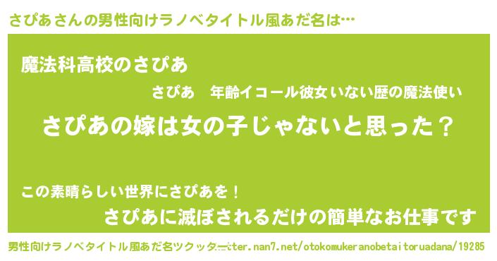 | 女子向けラノベタイトル風あだ名 | 『さぴあ様がみてる』 |