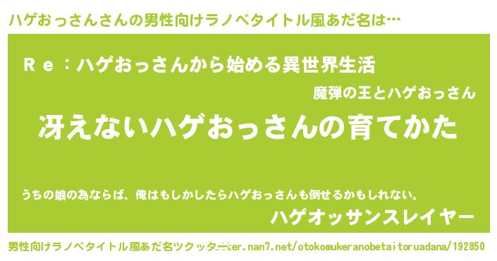 | ヒーロー風カッコイイあだ名 | 『サイバー戦士ハゲオッサン』 |