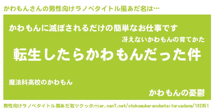 | 胡散臭い通販商品みたいなあだ名 | 『モテモテ間違いなしブレスレット…その名も「かわもん」』 |