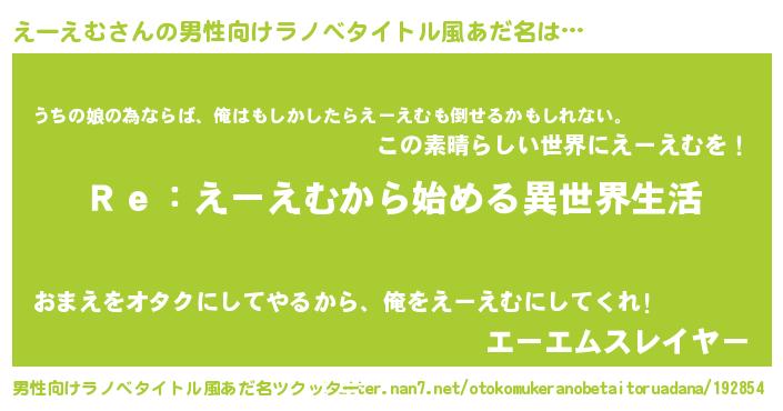 | 意味不明あだ名 | 『自称えーえむ』『えーえむフォーエバー』 |