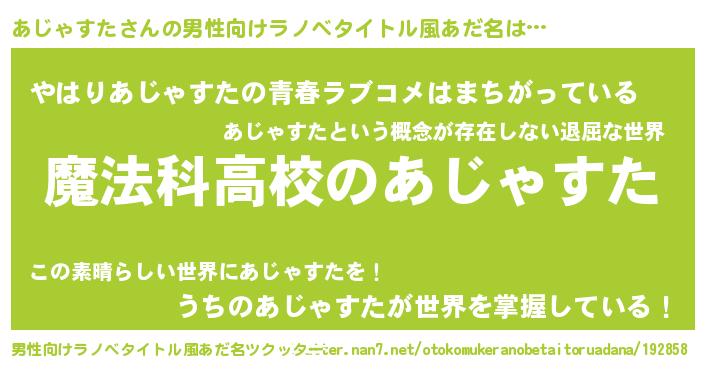 | ヒーロー風カッコイイあだ名 | 『ウルトラ戦士アジャスタ』 |