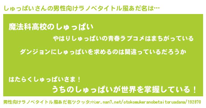 | 女子向けラノベタイトル風あだ名 | 『しゅっぱいは平凡を望む』 |