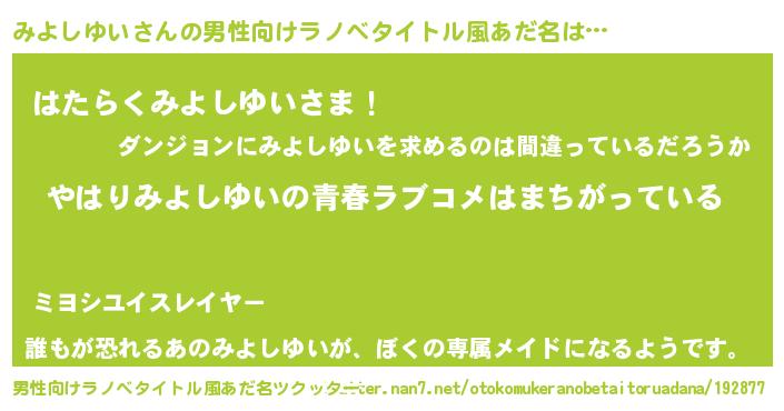 | 女子向けラノベタイトル風あだ名 | 『みよしゆいの雑貨屋さん』 |
